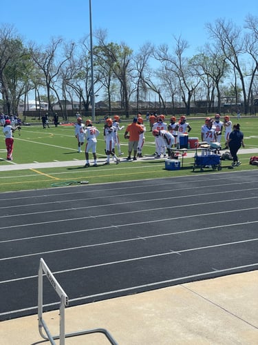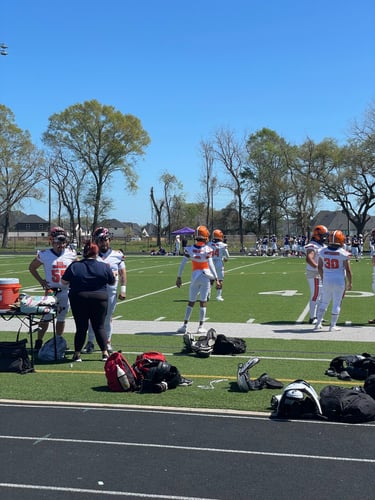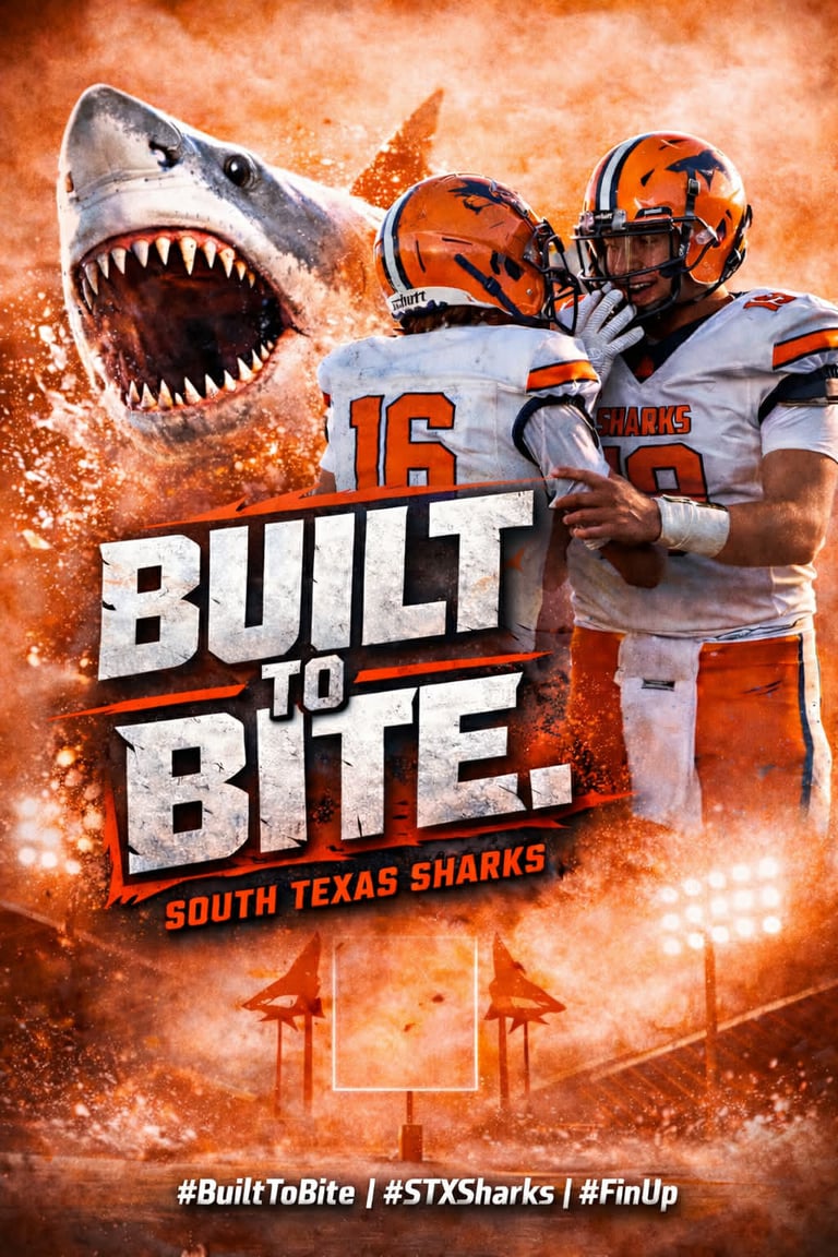 The STX Sharks are a passionate football team based in San Antonio, Texas, proudly representing our colors: orange, blue, and white.